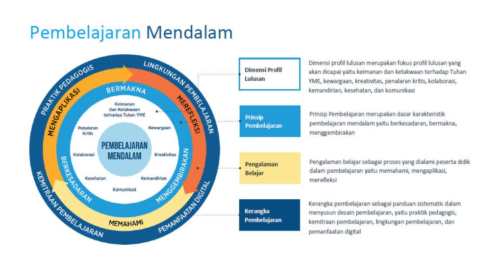 Pembelajaran Mendalam adalah pendekatan belajar yang menempatkan peserta didik sebagai pusat proses belajar. Bukan hanya mengejar nilai atau menghafal materi, pendekatan ini menekankan: proses berpikir kritis, kolaborasi, refleksi, dan keterhubungan antara pembelajaran dengan kehidupan nyata.